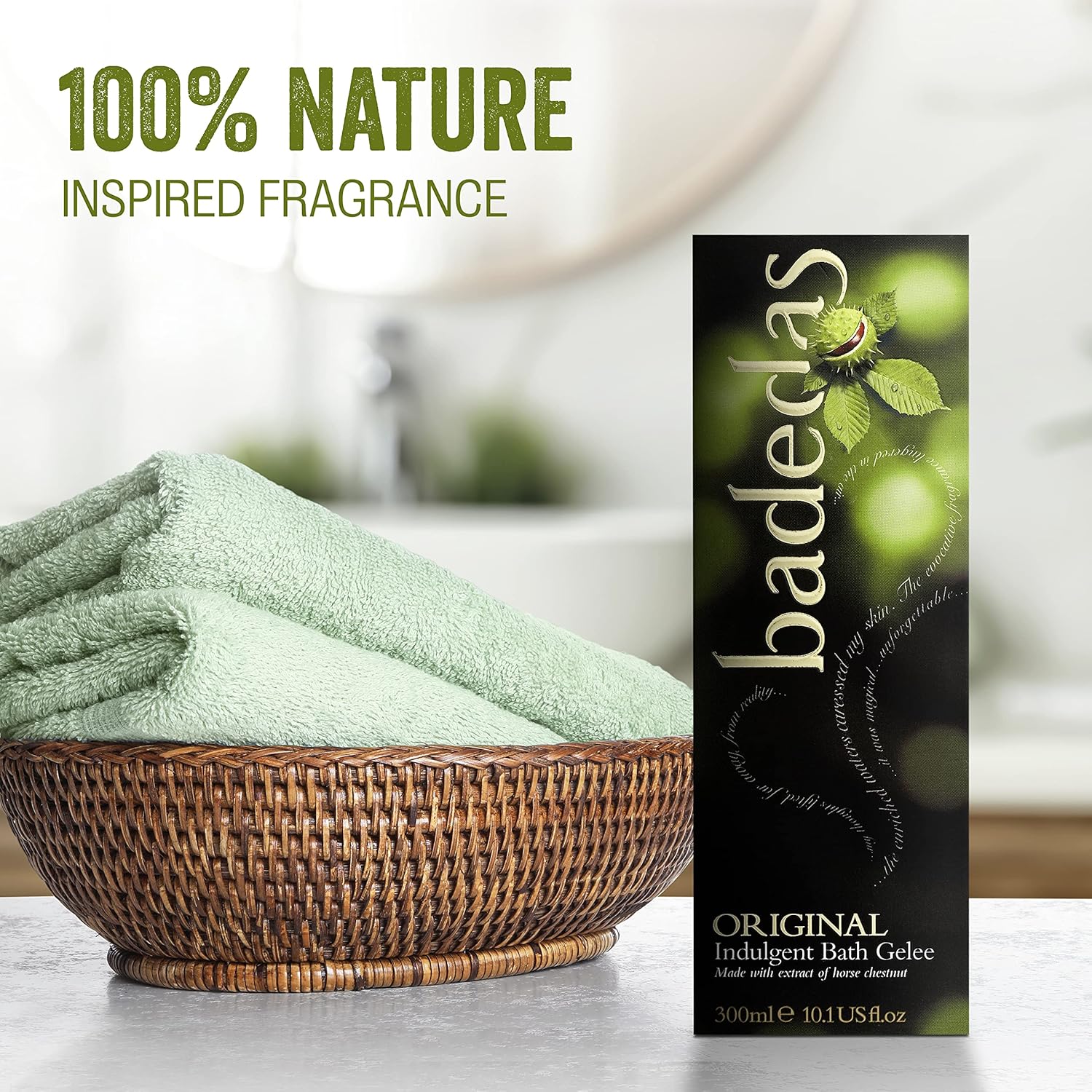 Immerse yourself in pure indulgence with Badedas Original Indulgent Bath Gelee, a luxurious, rich bath soak infused with horse chestnut extract and natural plant extracts. Designed to soothe, nourish, and refresh the skin, this concentrated formula creates a rich, foamy lather that envelops you in the signature Badedas fragrance, leaving your skin feeling soft, moisturised, and beautifully scented.
