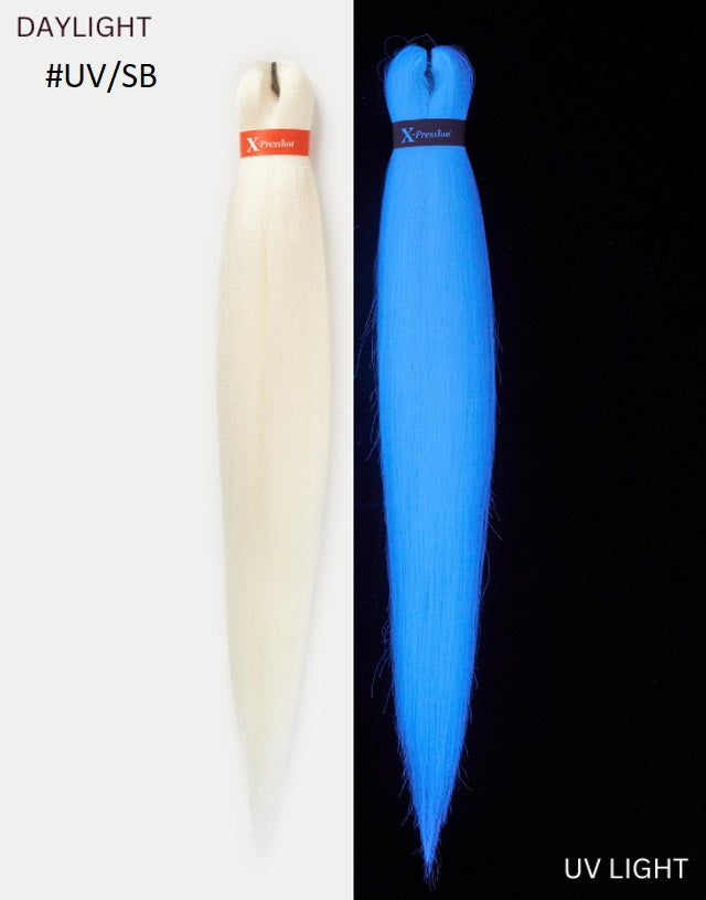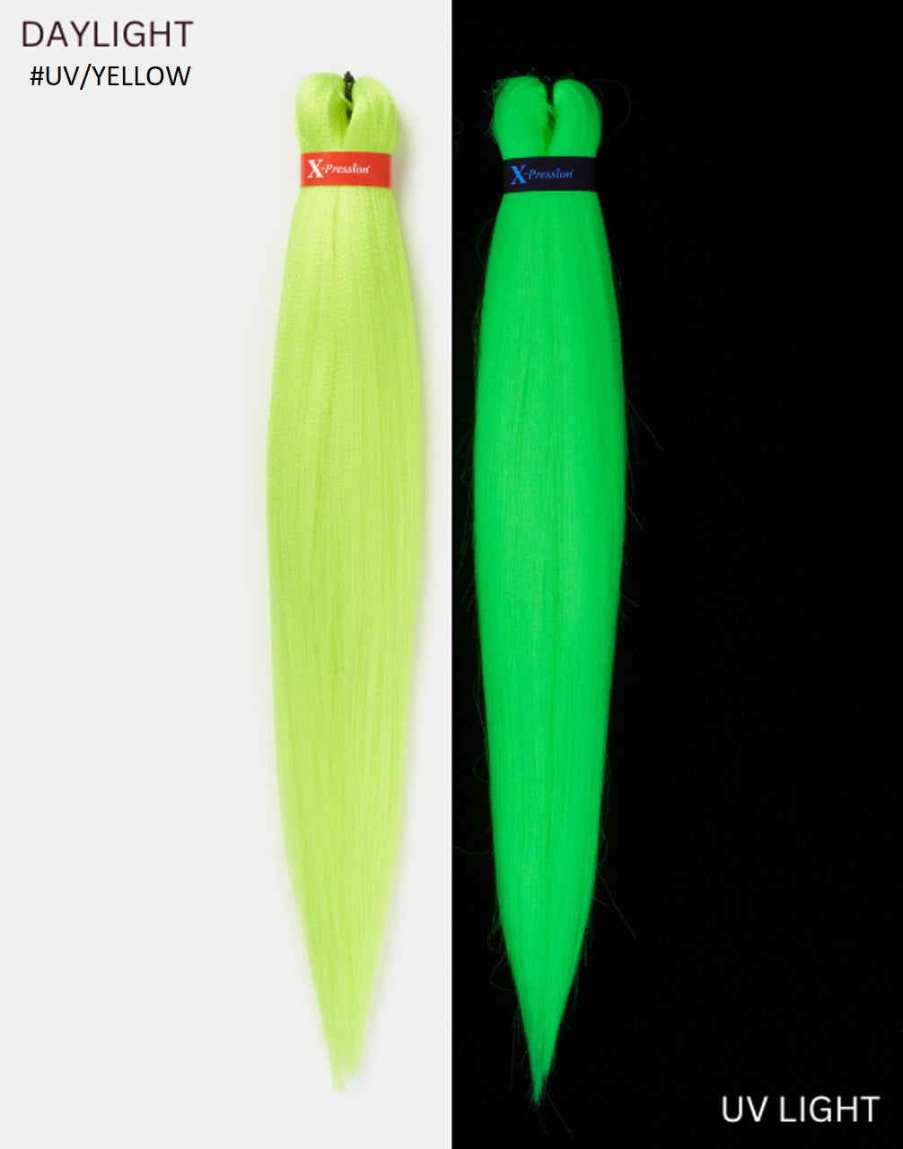 X-Pression - Pre-Stretched Ultraviolet , achieve your glow up braid goals with X-Pression Ultraviolet Pre-Stretched. The 100% Kanekalon tresses has a unique special glow in the dark effect under UV and artificial lighting. Other unique features include pre-Stretched lengths reaching a desirable style, eliminating the hassle of stretching out hair. This makes the entire braiding process quicker and easier – saving you time and money, as one pack comes with two generous bundles.